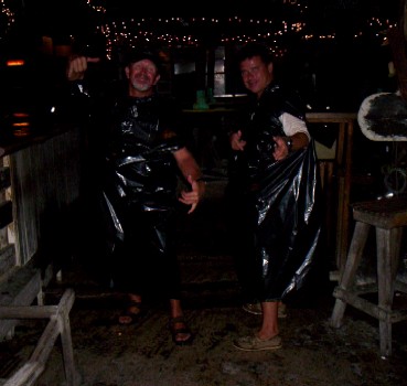 During out venture into town, it started raining pretty hard, and since we left our rain gear on board, we had to improvise a bit. Hence the trash bags (click “more” to see the photos) …